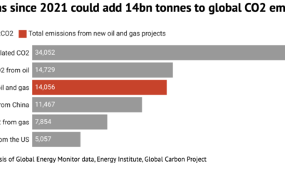 Burning all the oil and gas from new discoveries and newly approved projects since 2021 would emit at least 14.1bn tonnes of carbon dioxide (GtCO2), according...