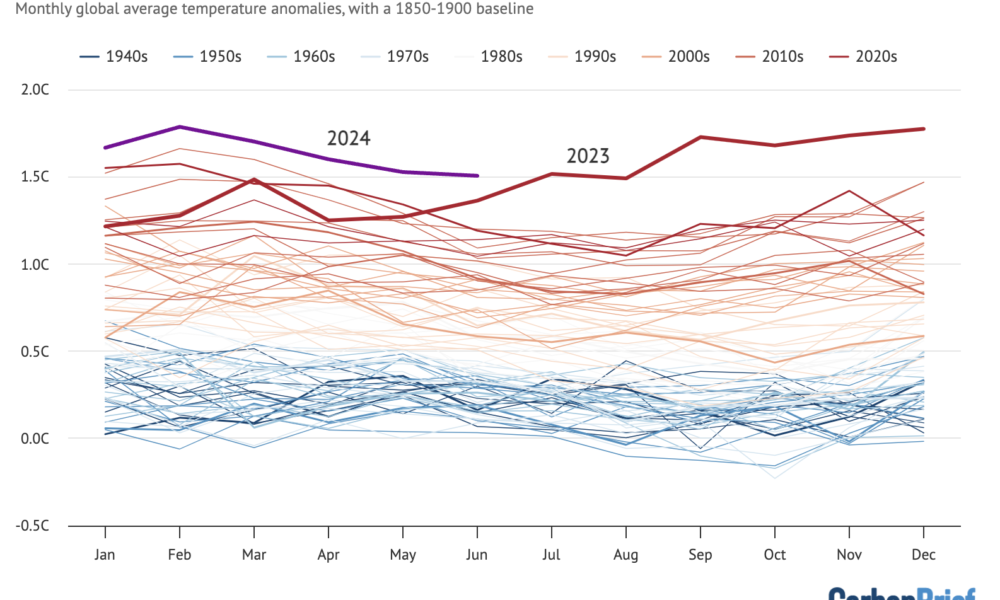As 2024 passes its midpoint, the global climate continues to push into uncharted territory. Carbon Brief’s analysis indicates a 95% probability that this year will surpass...