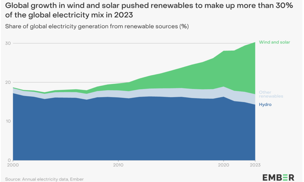 Thanks to huge growth in solar and wind, renewable energy broke records in 2023, generating 30% of electricity worldwide. Green energy from solar and wind made...