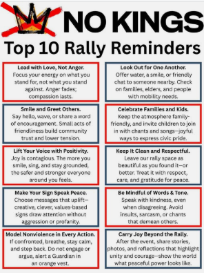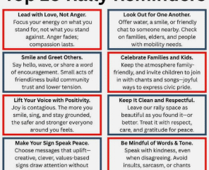 At left are some wonderful pieces of advice, though I would guess that at least 99% of the participants in the rally are already coming in...