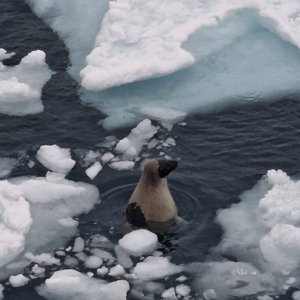 Anschließend fuhren wir näher an das Meereis heran, was für viele von uns ein besonderes Highlight war. Das Eis aus nächster Nähe zu sehen und sogar eine Robbe in der Nähe schwimmen zu beobachten, machte das Erlebnis unvergesslich.