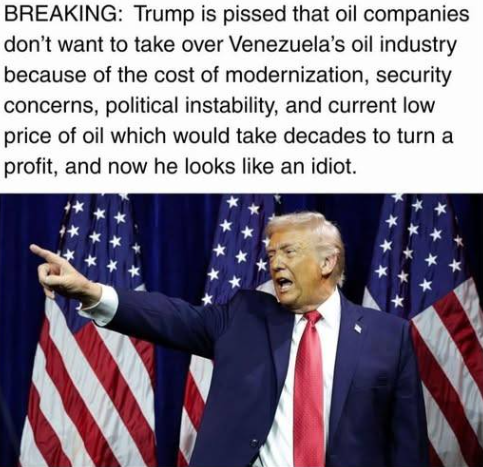 This seems to indicate that Big Oil, though heavily dependent on the GOP for its success in the United States, recognizes its responsibility to its shareholders, and is unwilling to make asinine business decisions just to make Trump happy.