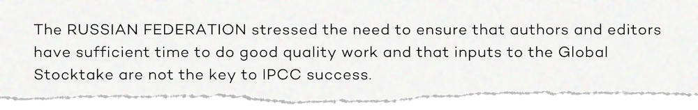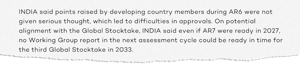 “The agenda item ‘progress with the timeline of AR7’ was added at the last minute upon pressure by countries including India and Saudi Arabia, in an attempt to introduce their own timelines into the process, which would push both WG2 and WG3 to 2029.