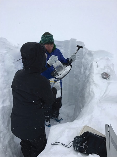 The research team collecting snow samples in the Rocky Mountains in the spring of 2018. DRI