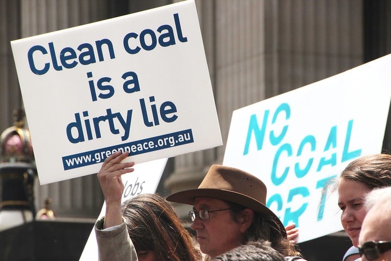 A protest against “clean coal” outside the Victorian Parliament House in Melbourne, Australia on Dec. 10, 2013. John Englart / Flickr